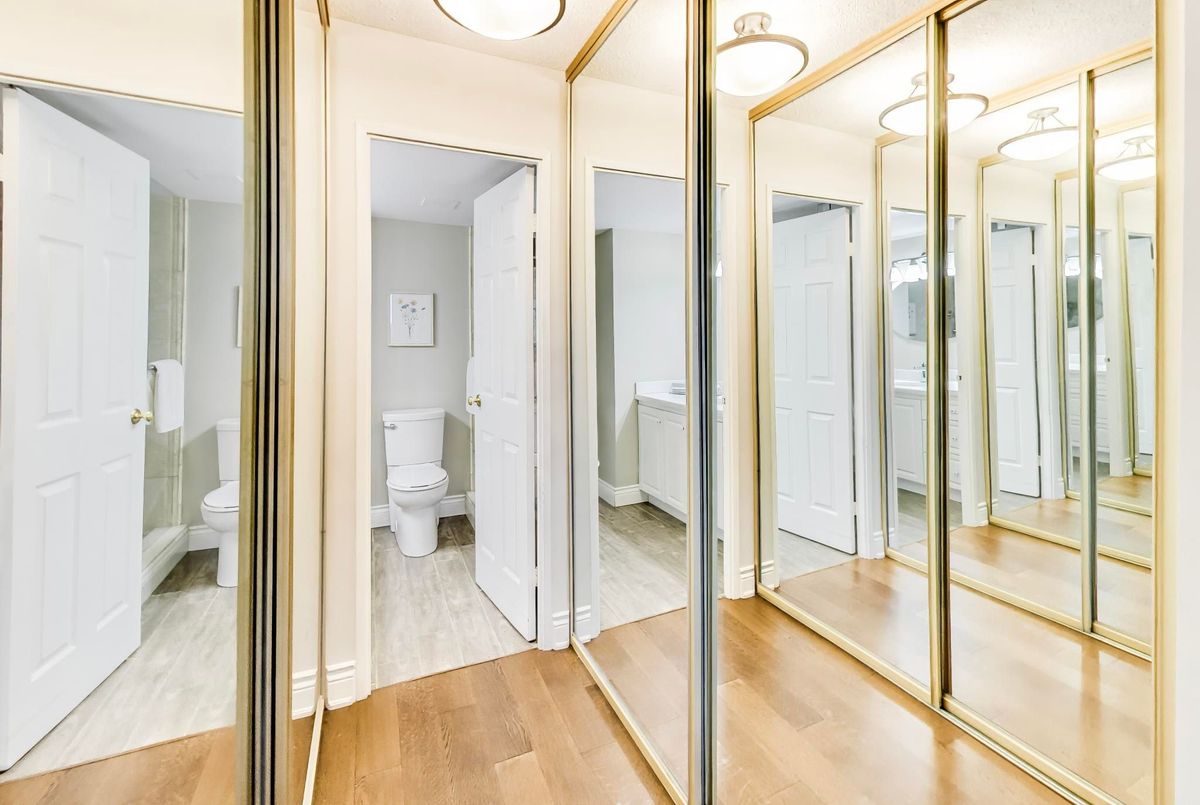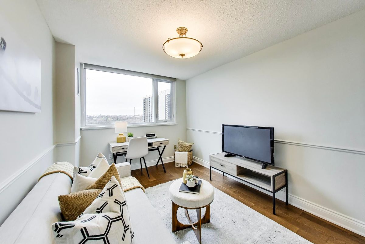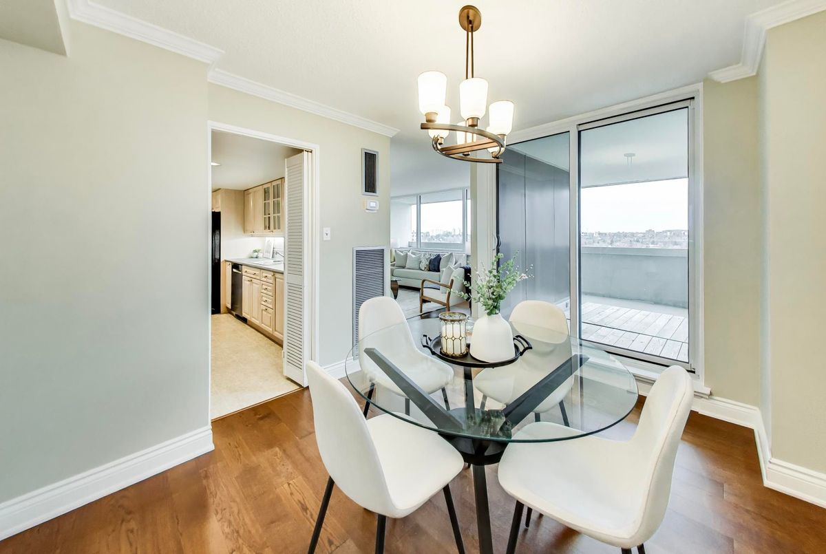 Welcome to Wynford Place, a boutique-style residence set on 4.5 acres of beautifully maintained, peaceful grounds. Sitting directly above Don Valley ravine for long walks and many trails for miles. This bright and spacious 2+1 bedroom, 2-bathroom suite features a thoughtfully designed layout and a lovely updated kitchen, ideal for a couple, small family, or professional. 1482 sq ft of Living space with 200 sq ft of exterior space. The Balcony is so large you can fit a table of 4 as well as lounge chairs for outdoor entertaining as well. Enjoy the convenience of maintenance fees that include heat, hydro, water, A/C, Bell Fibe TV and Internet as well as 24-hour concierge service. Exceptional amenities include a fully equipped gym, indoor pool, sauna, party room with kitchen, squash and racquetball courts, ping-pong, billiards room, card room, library, and golf swing practice area we even have a wood working shop!. Outdoor amenities feature pickleball and tennis courts, BBQ areas, and abundance of visitor parking. Well-managed building with a strong reserve fund.
